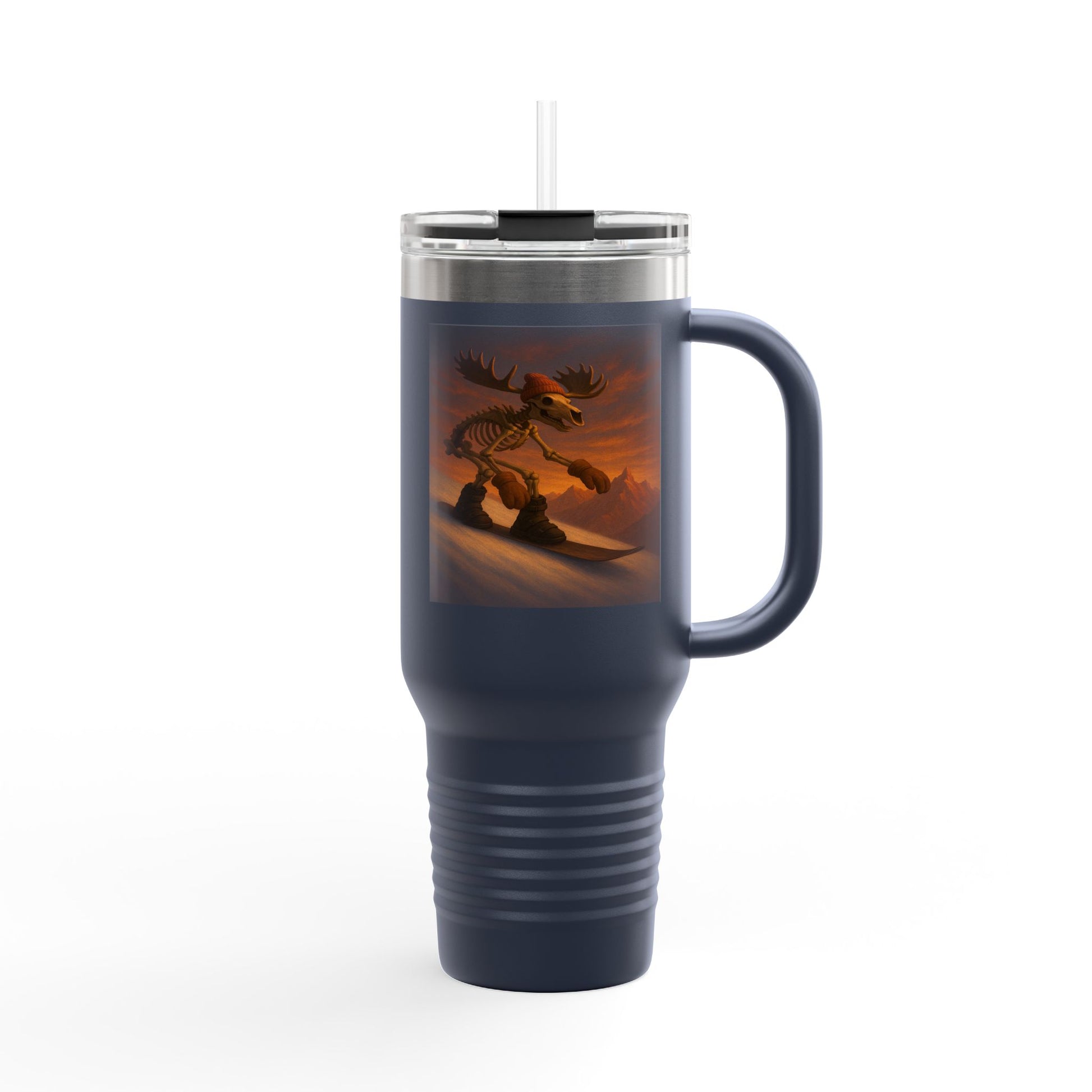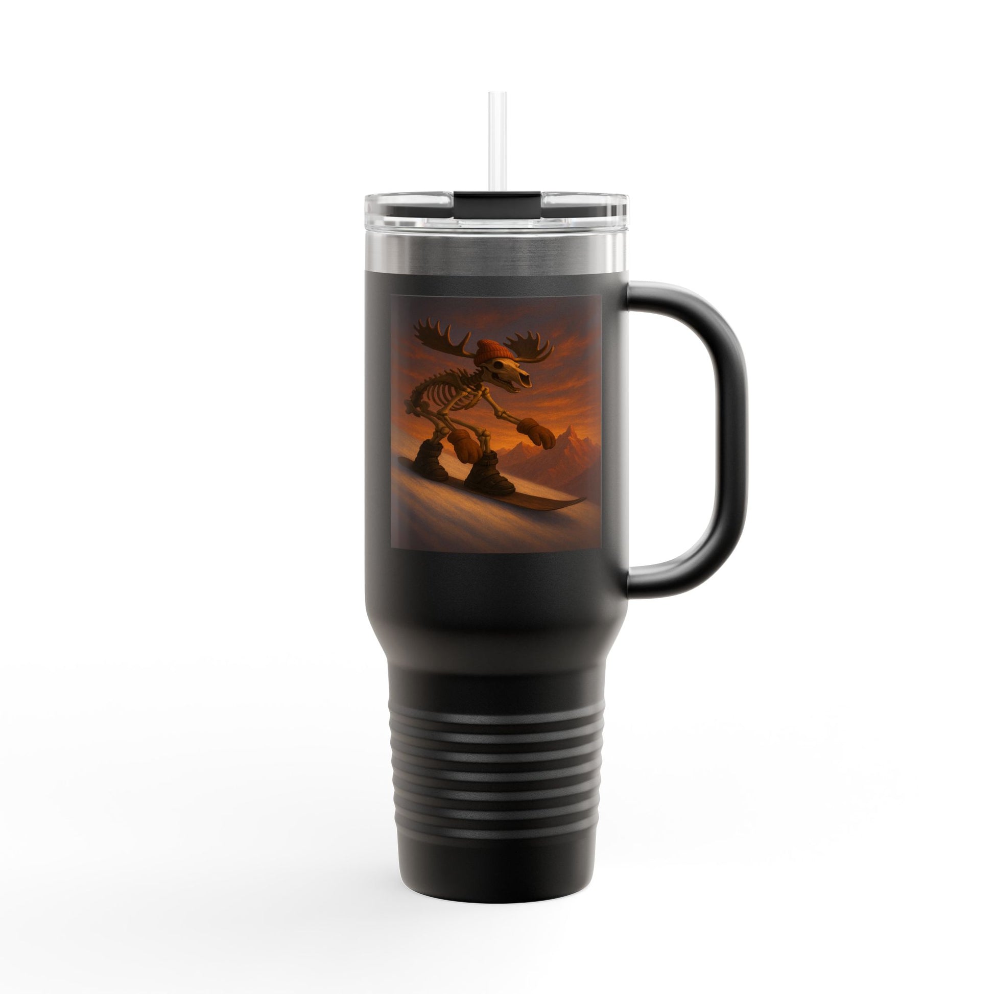 This 40oz insulated travel mug is built for long days, early mornings, and afternoon adventures. Thick double-wall stainless steel locks in heat or chill for hours, while the ergonomic handle and leak-resistant lid make it easy to carry and drink on the move. A powder-coated finish adds texture and grip, and the included straw and secure push-on lid reduce spills during commutes, road trips, or time on the water. Vibrant UV-DTF artwork adheres smoothly to the surface for bold, lasting color. BPA-free and made with durable materials, this tumbler feels substantial in hand and ready for everyday use — from campsite coffee to highway hydration.